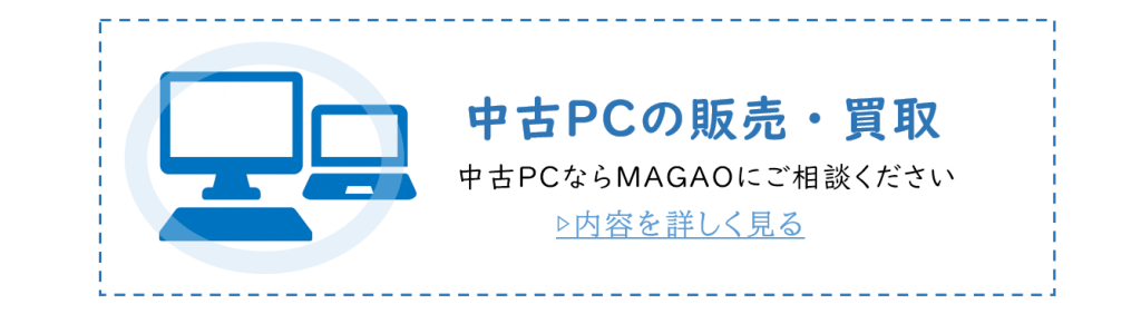 MAGAOでは店長北村の選んだ質の高い中古パソコンを販売しています。旧パソコンからのデータの引き継ぎ作業もさせていただきます。ネットからも店舗来店でもご購入できます。