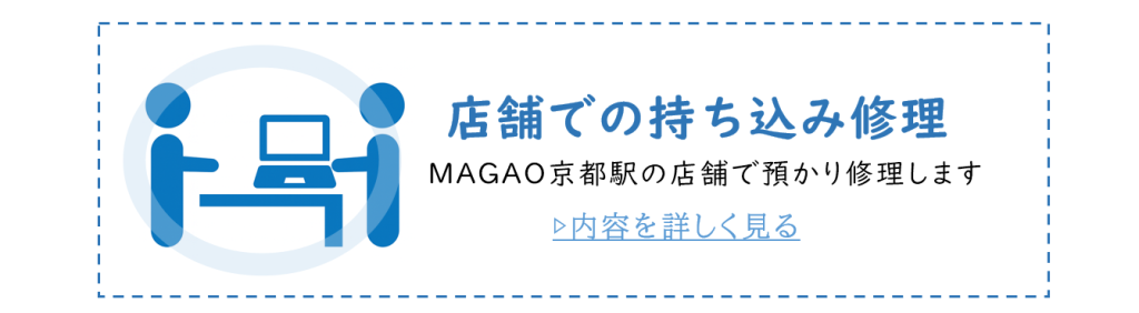 MAGAO(マガオ)京都駅は、京都駅(歩いて8分)の場所で、Windowsパソコンの修理と中古販売(只今、準備中)を行っています。パソコンが遅くて動きにくい問題や、原因不明のトラブルを解決します。